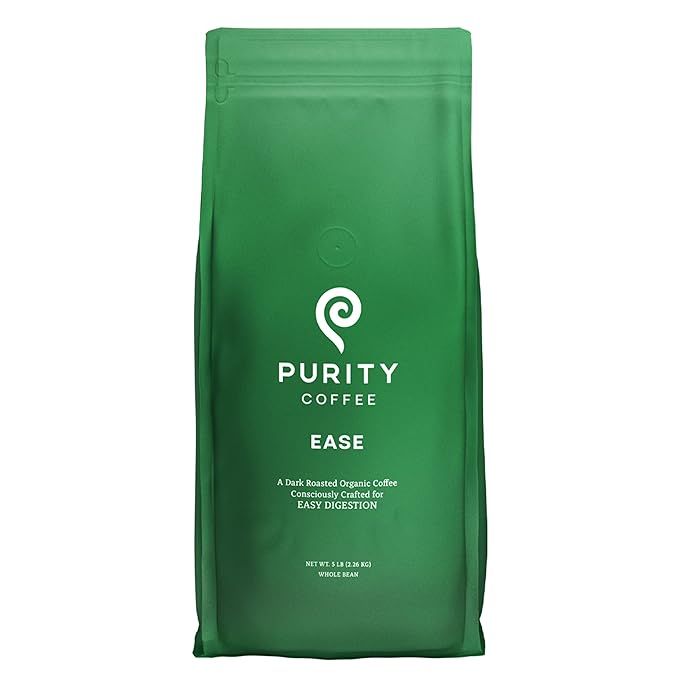 Purity Coffee EASE Dark Roast Low Acid Organic Coffee - USDA Certified Organic Specialty Grade Arabica Whole Bean Coffee - Third Party Tested for Mold, Mycotoxins and Pesticides - 5 lb Bag