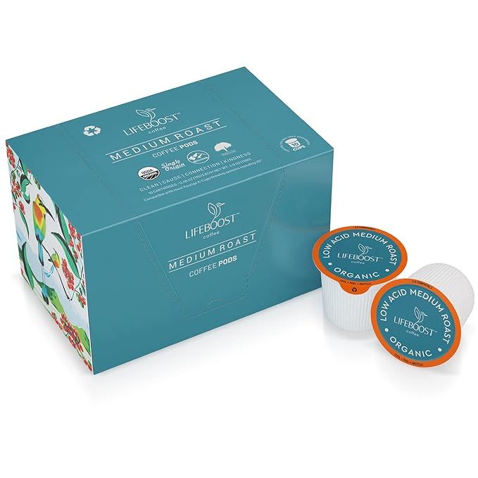 Lifeboost Medium Roast Low Acid Coffee K Cups - Single Origin Mold Free Non-GMO Organic Coffee Pods - Compatible with Keurig & Keurig 2 Machines - 10 Count