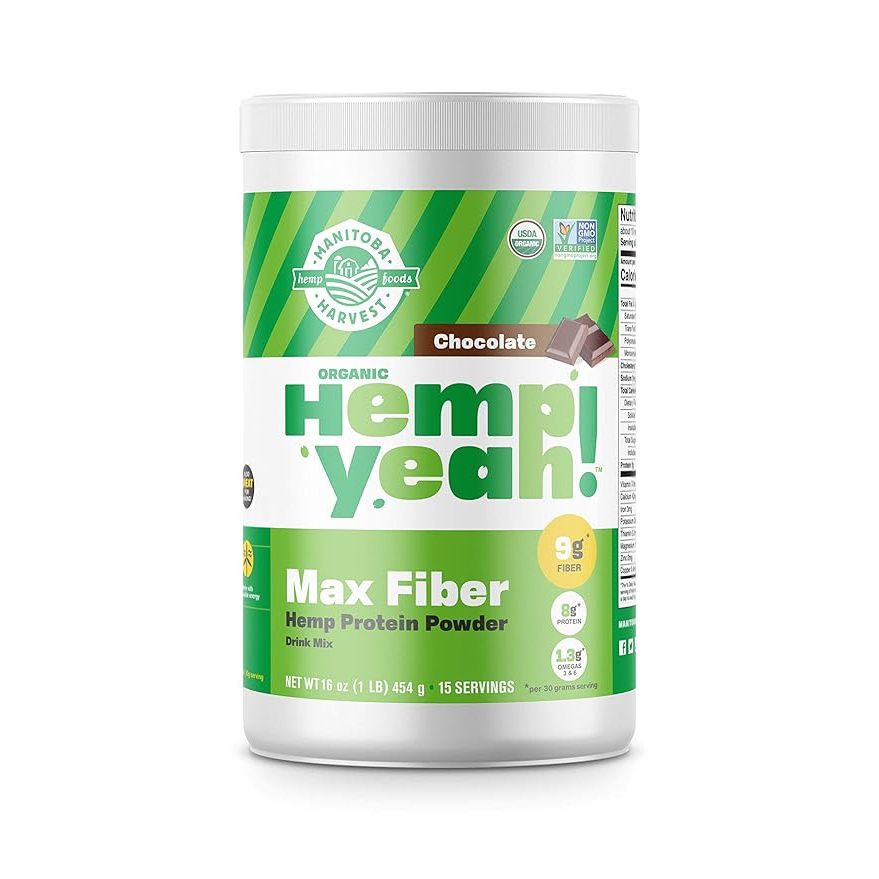Hemp Yeah! Organic Max Fiber Protein Powder is free from dairy, soy, and gluten, making it a suitable option for those with dietary restrictions or sensitivities. It is also non-GMO and certified organic, ensuring that you are getting a high-quality product. With its delicious chocolate flavor and nutrient-dense profile, Manitoba Harvest Hemp Yeah! Organic Max Fiber Protein Powder is a convenient and beneficial addition to any health-conscious individual's pantry. Description by ChatGPT.