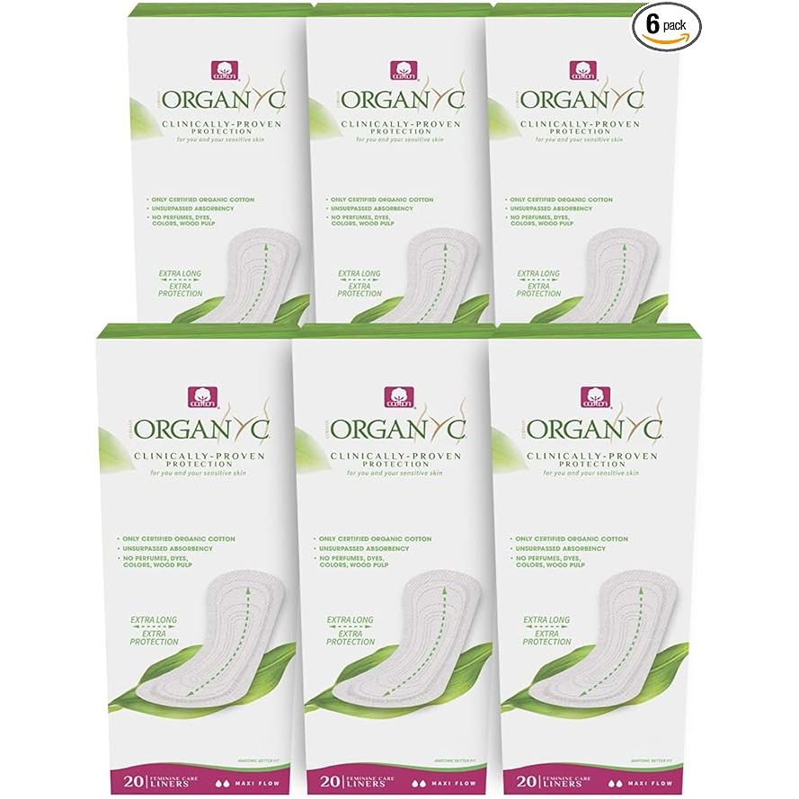 Organyc - 100% Certified Organic Cotton Flat Panty Liner - Everyday Sanitary Pad, Free from Wood Pulp, Perfumes, SAP and Chemicals, Maxi Flow, 120 Count(6 Pack, Maxi Flow)
