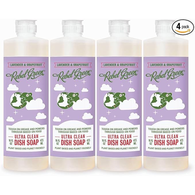 Rebel Green Super Deluxe Dish Soap - Natural Dishwashing Soap - Liquid Dish Detergent - Sustainable Dish Liquid Scented with Lavender & Grapefruit - (16 oz Bottles, 4 Pack)