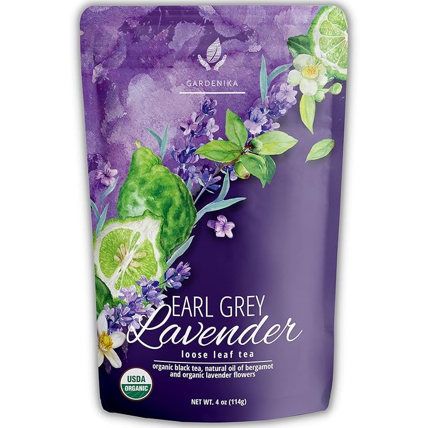 Gardenika Organic Earl Grey Loose Leaf Tea with Lavender and Bergamot Oil, Caffeinated Black Leaves, Kosher, No Natural or Artificial Flavors - 4 oz