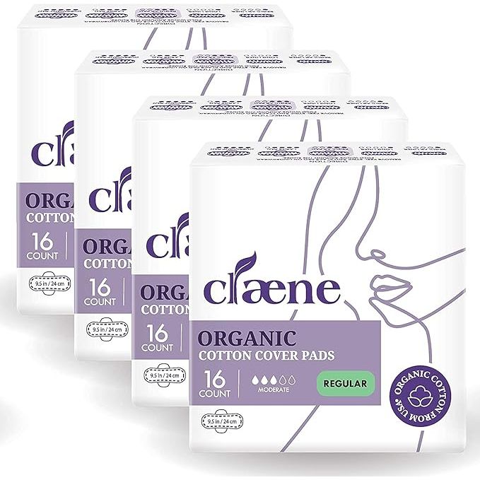 Organic Cotton Cover Pads, Cruelty-Free, Menstrual Overnight Sanitary Pads for Women, Unscented, Breathable, Vegan, Organic Pads, Natural Sanitary Napkins with Wings- 64 Count Pack of 1