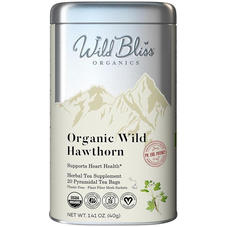 Organic Wild Hawthorn Leaf and Flower Herbal Tea is a caffeine-free tea made from the leaves and flowers of the hawthorn plant. This tea is formulated to pharmacopoeia potency standards, ensuring high quality and efficacy. Each box contains 20 plant-based tea bags, making it convenient and easy to enjoy the health benefits of hawthorn tea on the go.