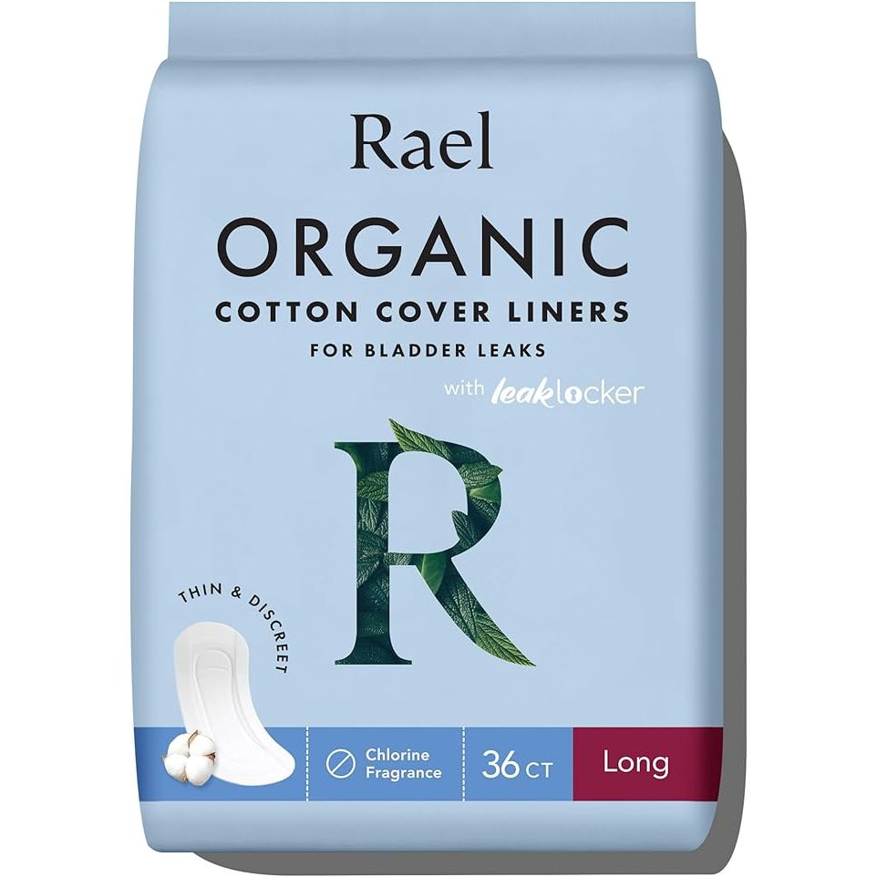 Rael Incontinence Liners for Women, Organic Cotton Cover - Postpartum Essential, Regular Absorbency, Bladder Leak Control, 4 Layer Core with Leak Guard Technology, (Long, 36 Count)