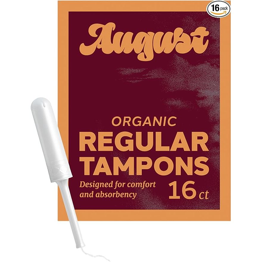 August Organic Cotton Tampons, Regular tampons, BPA Free Long Applicators, Non-Toxic Organic tampons, Fragrance-Free, Chlorine-Free, Hypoallergenic, 16 Count