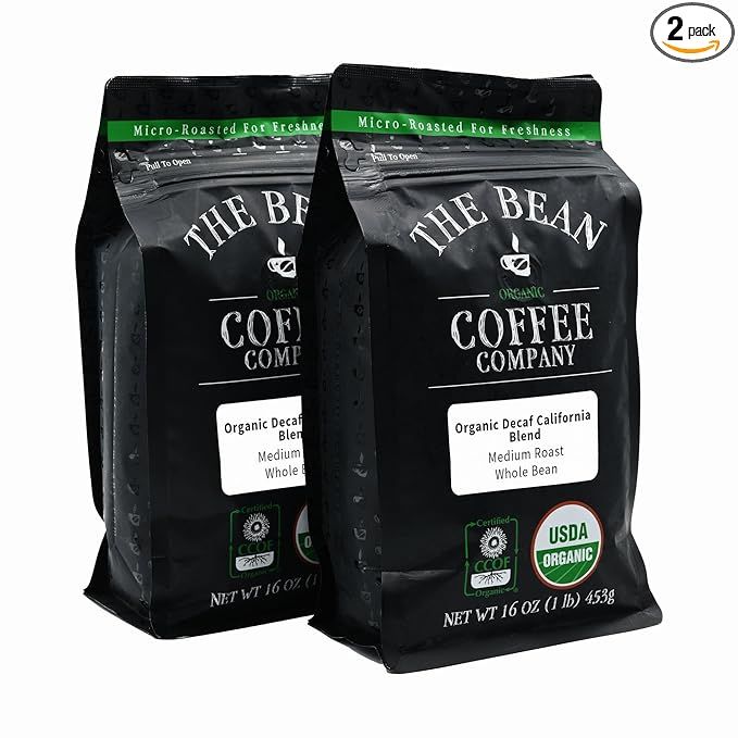 The Bean Organic Coffee Company Water Processed DECAF California Blend, Medium Roast, Whole Bean Coffee, 16-Ounce Bags (Pack of 2)