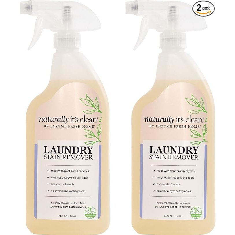 naturally It's clean Enzymatic Laundry Stain Remover Spray and Odor Eliminator | Fabric Safe Stain Sprayer Enzyme Cleaner to Remove Coffee, Grease, Makeup, Ink, Wine, Stubborn Stains and Odor | 2 Pack