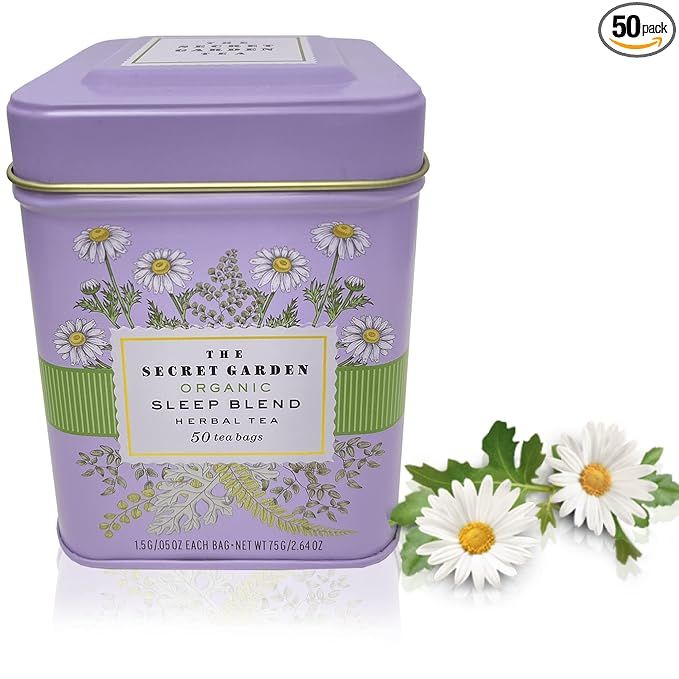 The Organic Sleep Blend Herbal Tea is a soothing and relaxing tea made with natural ingredients such as chamomile, peppermint, fennel, and tulsi. Each tea bag is USDA certified as 100% non-GMO and is decaffeinated, making it perfect for aiding in a restful night's sleep. This pack contains 50 packets of tea, making it convenient to enjoy this herbal blend regularly.