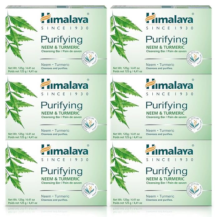 Himalaya Purifying Neem & Turmeric Cleansing Bar for Clean and Healthy Looking Skin, Free from Parabens, SLS and Phthalates, Gluten Free, Vegan, 125 g (4.41 oz), 6 Pack