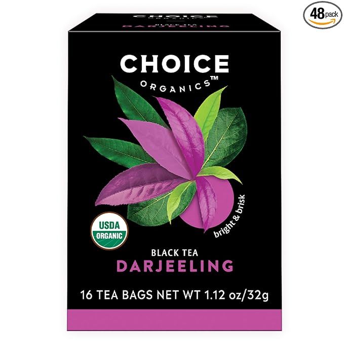 Choice Organics offers a 3 pack of organic Darjeeling tea that is both Fair Trade certified and compostable. Each pack contains 48 black tea bags, providing a total of 144 tea bags. Darjeeling tea is a popular choice among tea enthusiasts for its light, floral flavor and the health benefits associated with black tea.