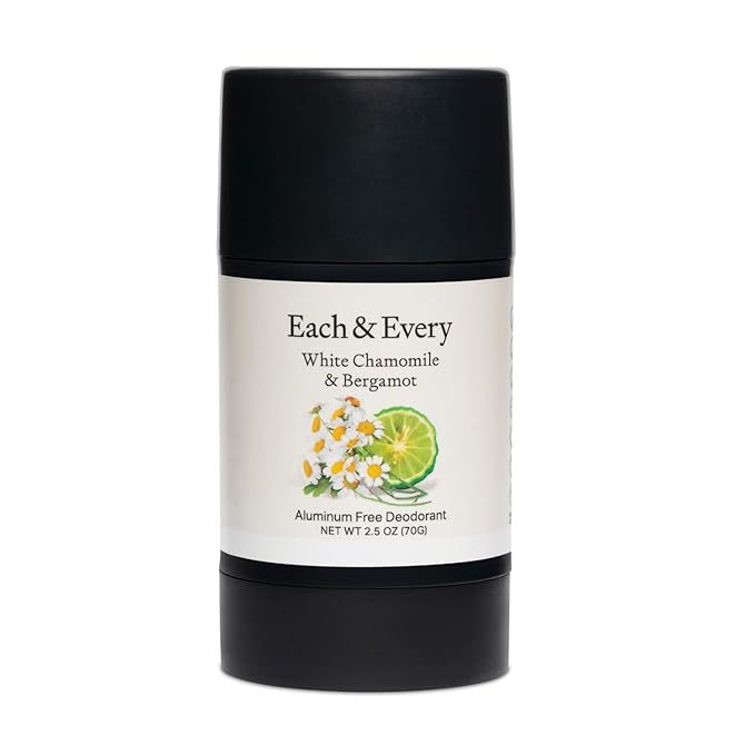Each & Every Natural Aluminum-Free Deodorant for Sensitive Skin with Essential Oils, Plant-Based Packaging, 2.5 Oz. (White Chamomile & Bergamot)