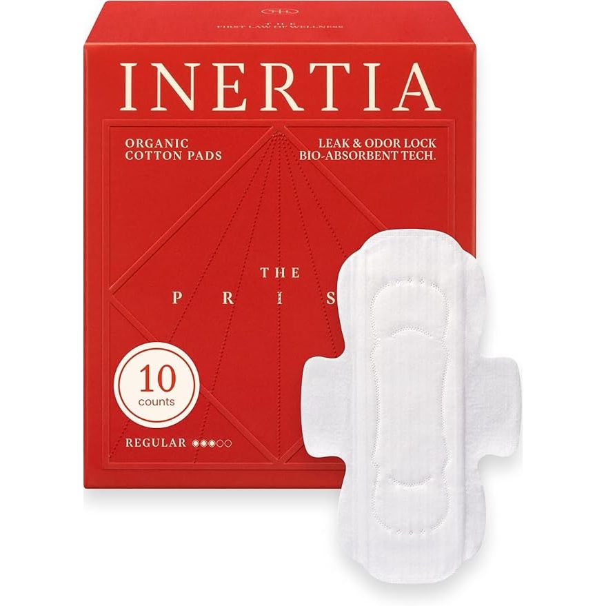 INERTIA Organic Pads for Women Regular Absorbency (10 Count) - The Most Organic Pads with The Best Absorbency, NO Petroleum-Based microplastic, Chlorine, Fragrance or Deodorant. (Pack of 1)
