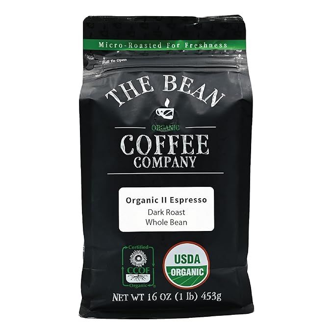 The Bean Organic Coffee Company Il Espresso, Dark Roast, Whole Bean Coffee, 16-Ounce Bag