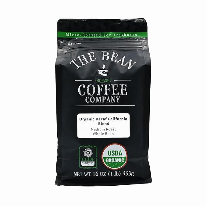 The Bean Organic Coffee Company Water Processed DECAF California Blend, Medium Roast, Whole Bean Coffee, 16-Ounce Bag