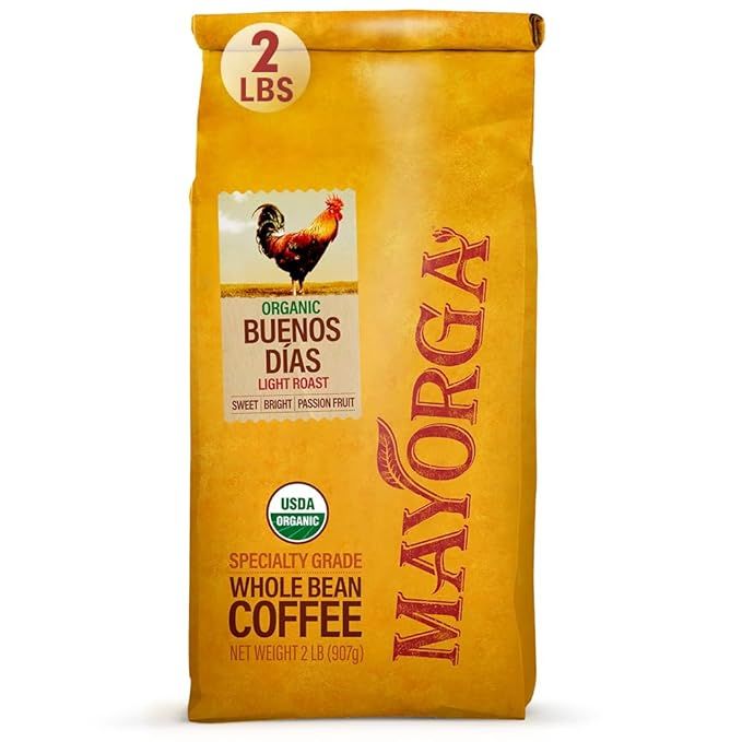 Mayorga Coffee Buenos Días Blend, 2 lb bag - Bright Light Roast Coffee - Organic Coffee - 100% Arabica Whole Beans - Sweet Passion Fruit Notes, Smooth Finish - Specialty Grade, Non-GMO, Direct Trade
