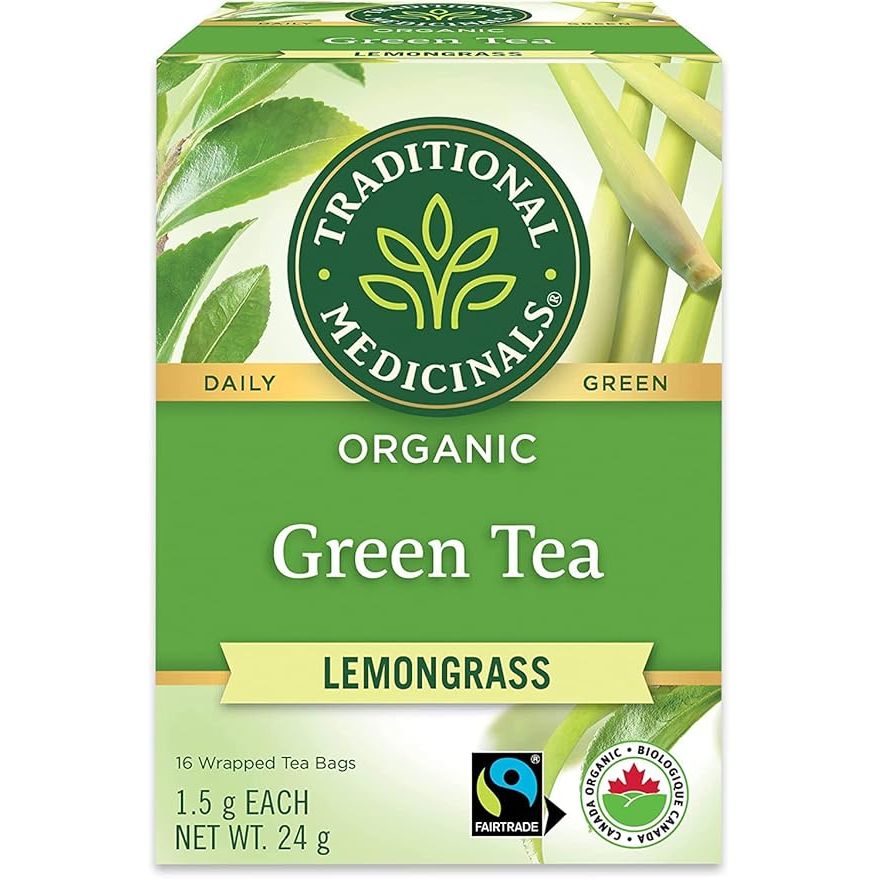 Traditional Medicinals Organic Green Tea Lemongrass is a pack of 16 tea bags made with fair trade ingredients. The combination of green tea and lemongrass creates a refreshing and energizing beverage that can be enjoyed daily. Green tea is known for its antioxidants and potential health benefits, while lemongrass adds a bright and uplifting flavor to the tea.