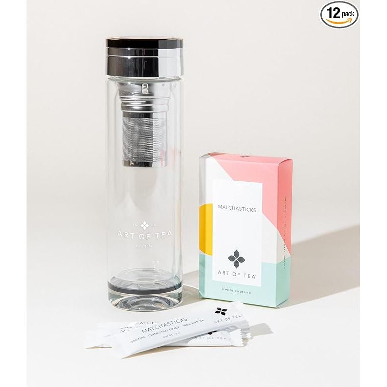 Art of Tea | Matcha Powder | Organic Japanese Ceremonial Matchasticks | 12 Count Single Serve Packets | Matcha Shaker Bottle Included
