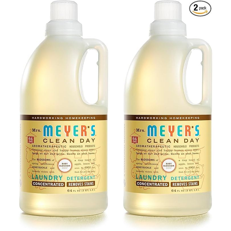 MRS. MEYER'S CLEAN DAY Baby Laundry Detergent Liquid is a plant-based laundry detergent specially formulated for baby's delicate skin. This detergent is gentle on baby's skin and free from harsh chemicals, dyes, and artificial fragrances. It is infused with essential oils for a light, natural scent of Baby Blossom.