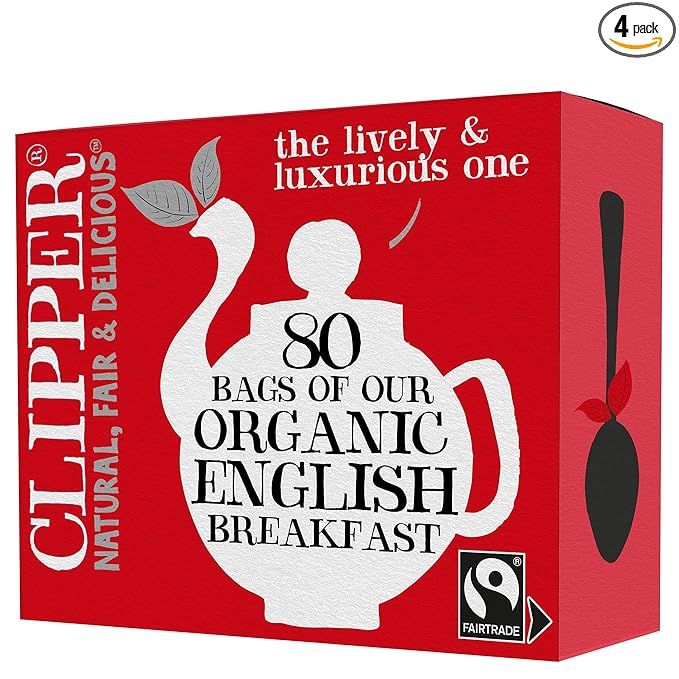 Clipper Tea, English Breakfast Assam Blend, Fairtrade, Organic, Plant-Based, Caffeinated British Tea, 1 Pack, 80 Unbleached Tea Bags