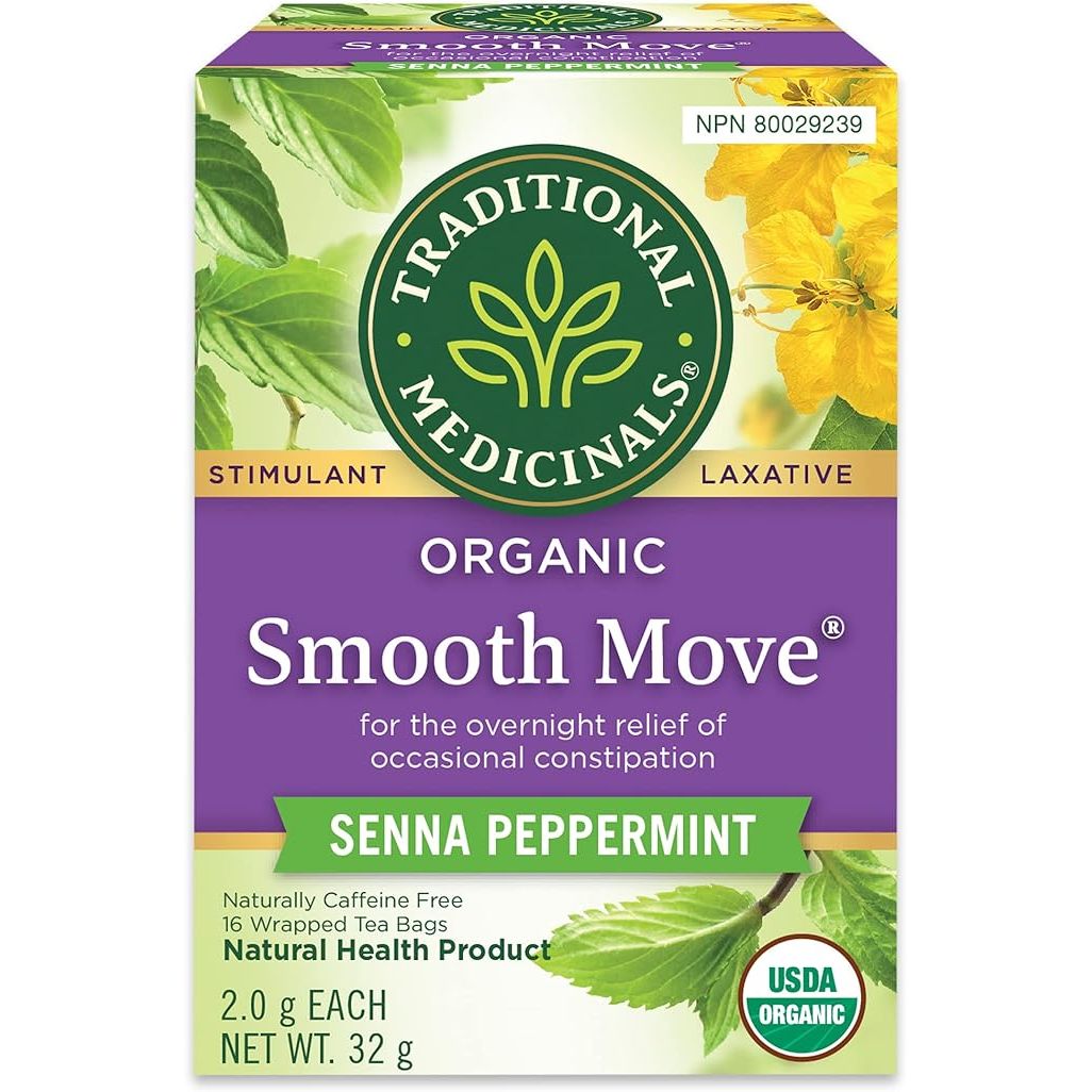 Traditional Medicinals - Organic Smooth Move Peppermint Laxative Herbal Tea (Pack of 1) - Gentle Overnight Relief of Occasional Constipation - 16 Tea Bags Total